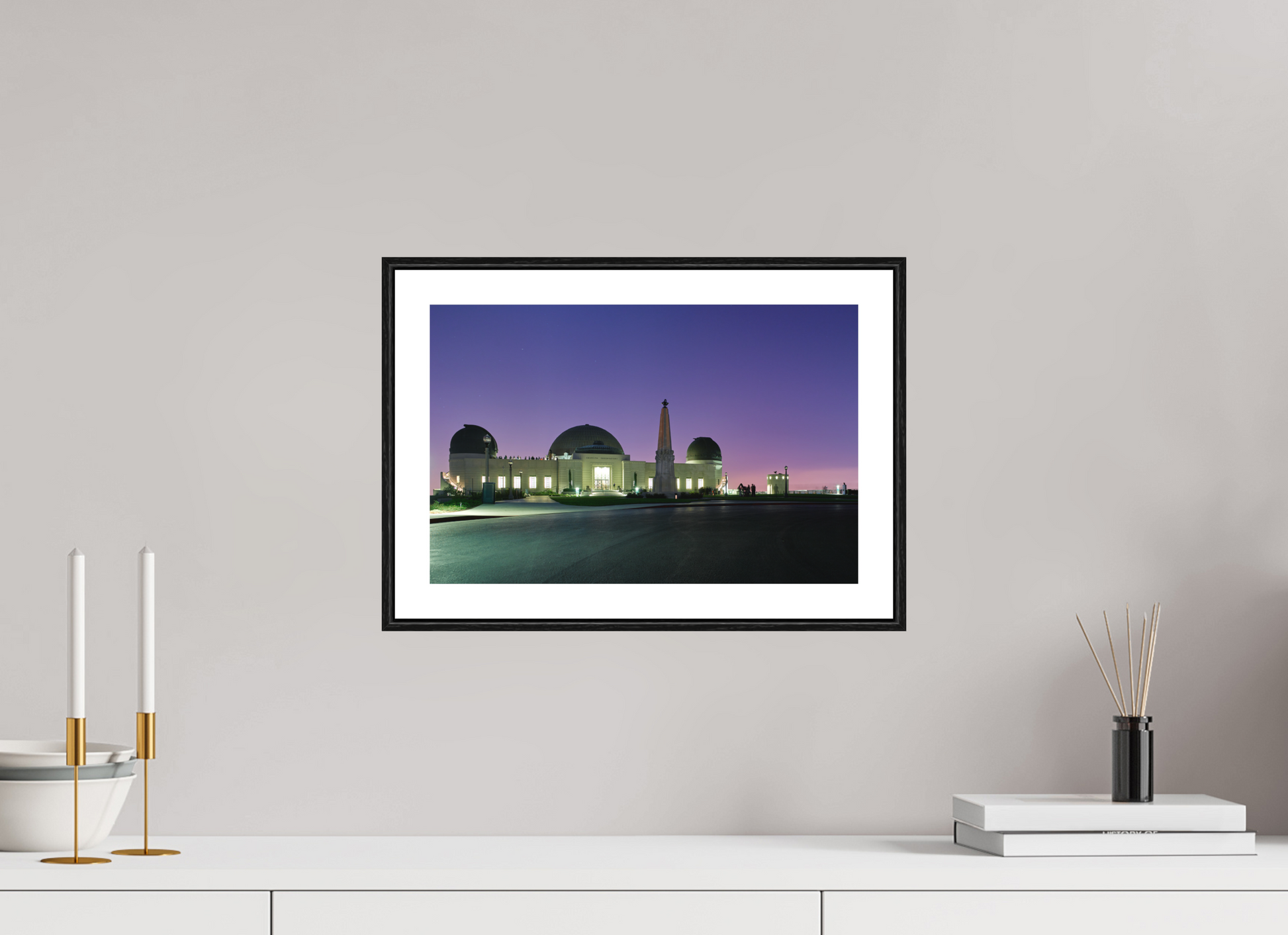 Das ikonische Griffith Observatory erhebt sich majestätisch über den Lichtern der Stadt. Eingetaucht in sanftes Dämmerlicht zwischen Violett und Tiefblau wirkt das Observatorium fast wie ein futuristischer Tempel – eine Mischung aus Wissenschaft, Geschichte und Filmromantik.