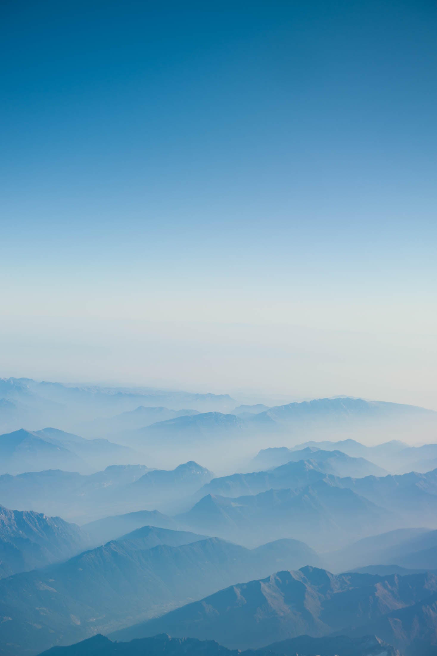 Wie mit Aquarell gemalt: Dieses luftige Landschaftspanorama zeigt die französischen Seealpen im sanften Dunst des Vormittags. Die Bergketten verlieren sich Schicht für Schicht im Licht – von dunklem Blau im Vordergrund bis zu fast transparenten Silhouetten am Horizont.